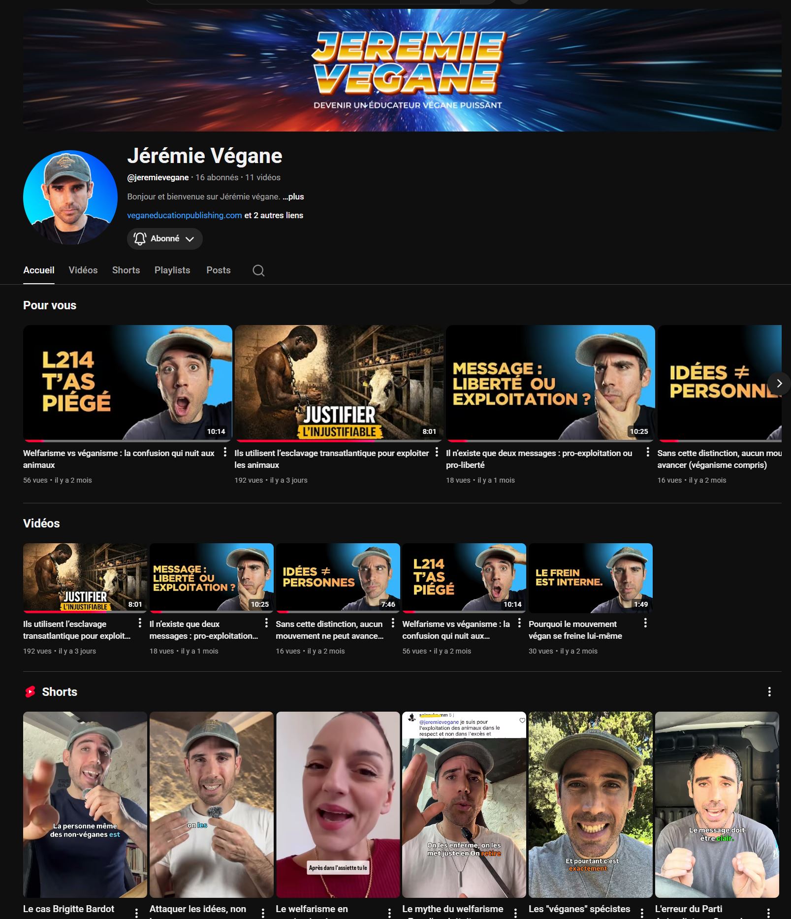 El canal Jérémie Végane está destinado a veganos francófonos que desean convertirse en educadores veganos sólidos.