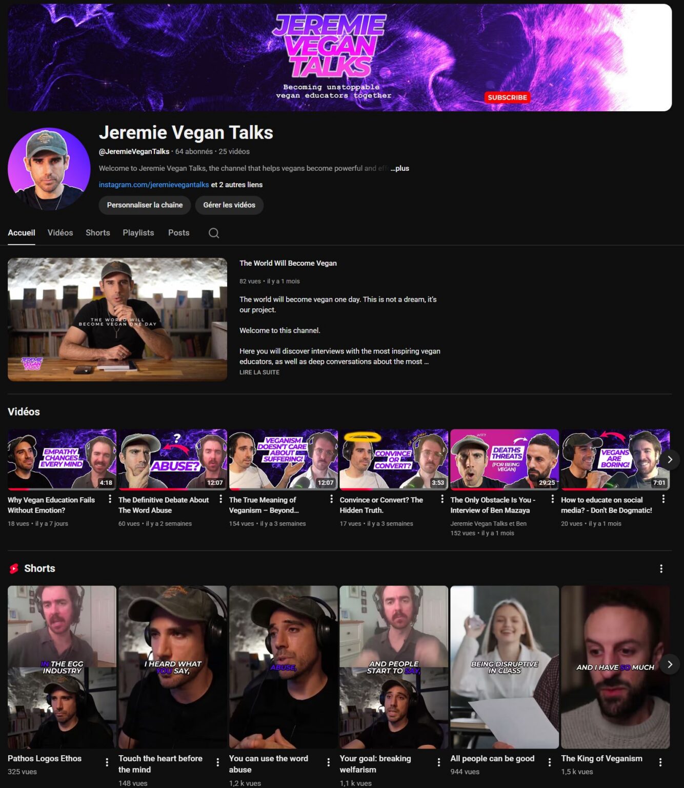 El canal Jérémie Vegan Talks persigue el mismo objetivo a nivel internacional.